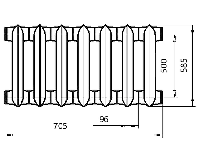 Номинальный тепловой поток 1 секции – 0,155 кВт, (при t – 70 ° C , t теплоносителя – 90 °C , t окруж. среды - 20 °C );